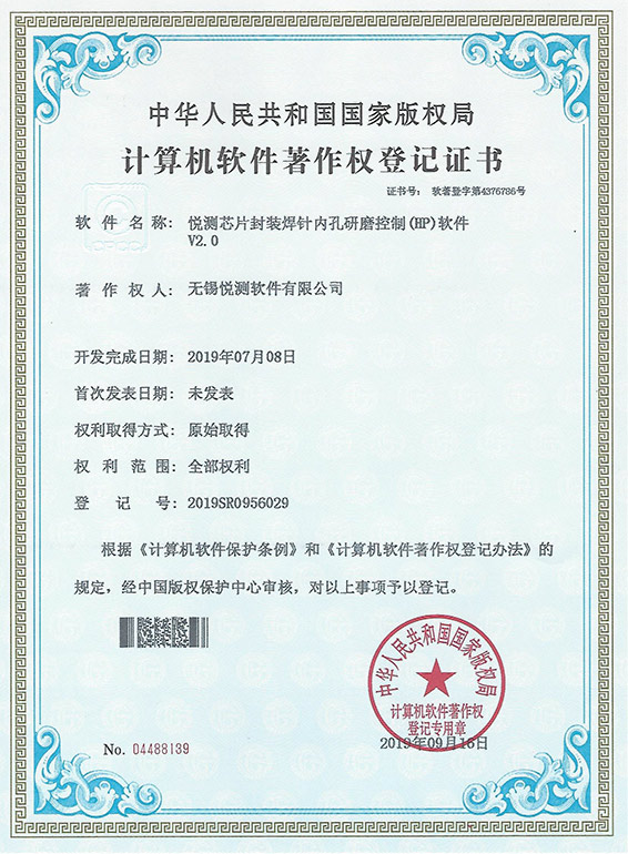 软著、悦测芯片封装焊针内孔研磨控制(HP)软件V2.0