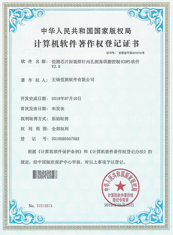 软著、悦测芯片封装焊针内孔倒角研磨控制(CDP)软件 V2.0